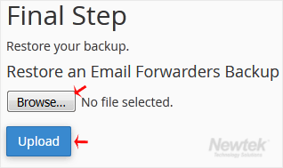 5. Click on Browse. Select the backup file from your computer and click on Upload.