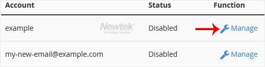 3. On the BoxTrapper's page, you see a list of your emails under the Account heading and the status of BoxTrapper under the Status heading. Choose Manage.