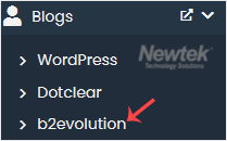 4. On the left side, locate the Blogs category. Click on it and then on the b2evolution link that appears.