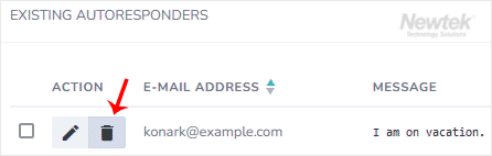 2. Under the Existing Autoresponders, click on the Delete icon next to the e-mail address.
