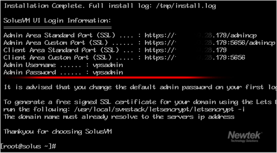 Don't forget to change your default username and password for SolusVM. The default username/password is not secure, and it is easy for anyone to access your panel using them.