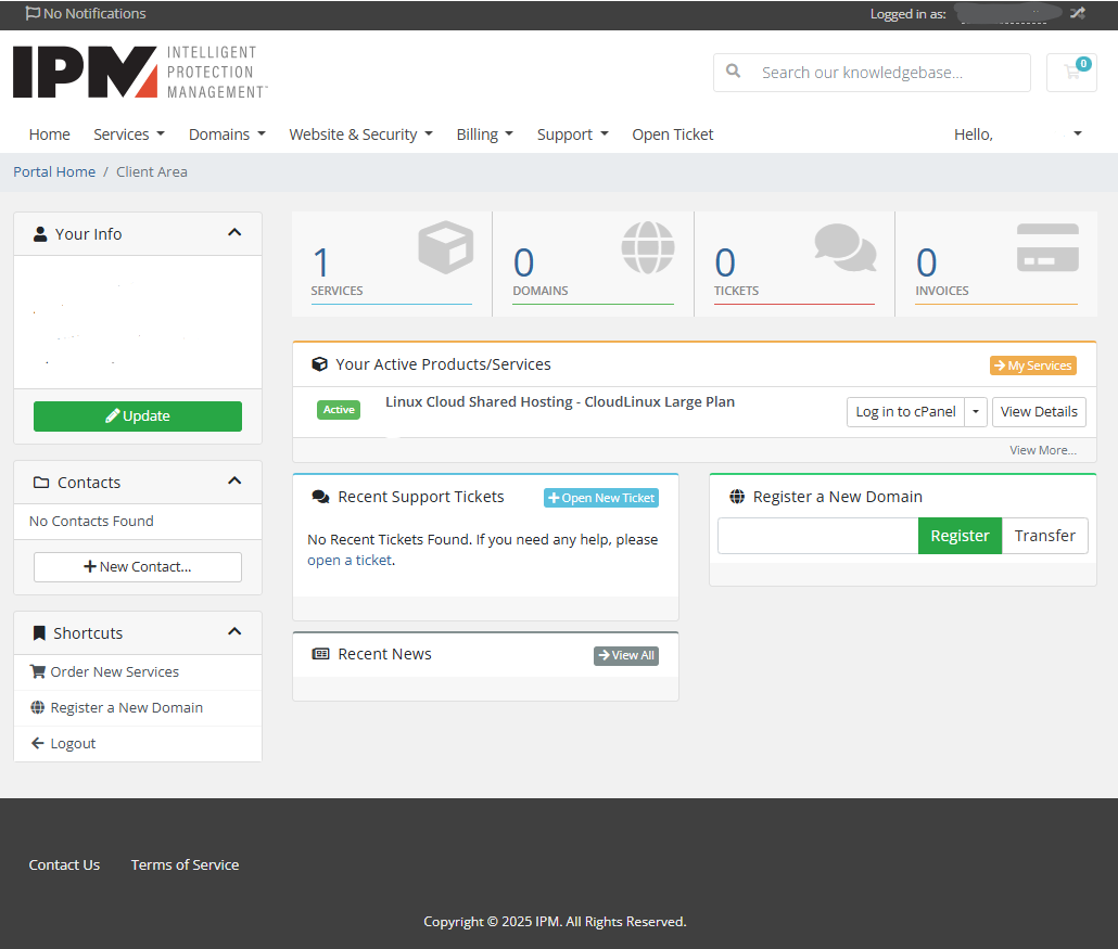 This is the website used to manage your hosting products and services with Newtek. To log into your Newtek Client Portal area you will your email address and password.