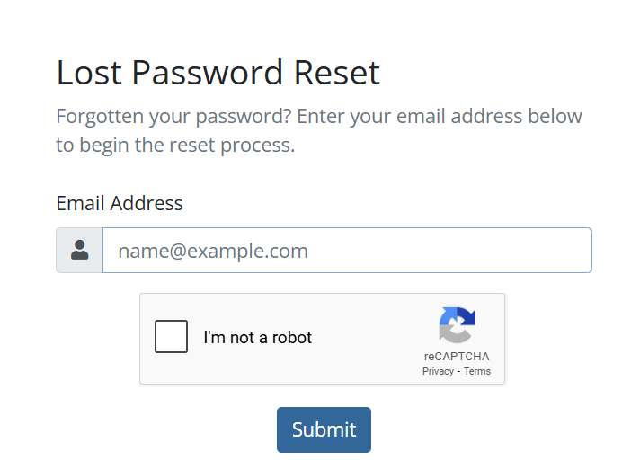 3. If you have a security question set up, answer it and click Submit. If you do not have a security question setup, an email will be on its way.