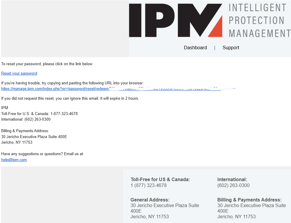 If you have forgotten your password, you can use the Password Reset feature available at the IPM Portal. When you fill in your registered email address (and answer your account security question if set), you will be emailed instructions on how to reset your password.