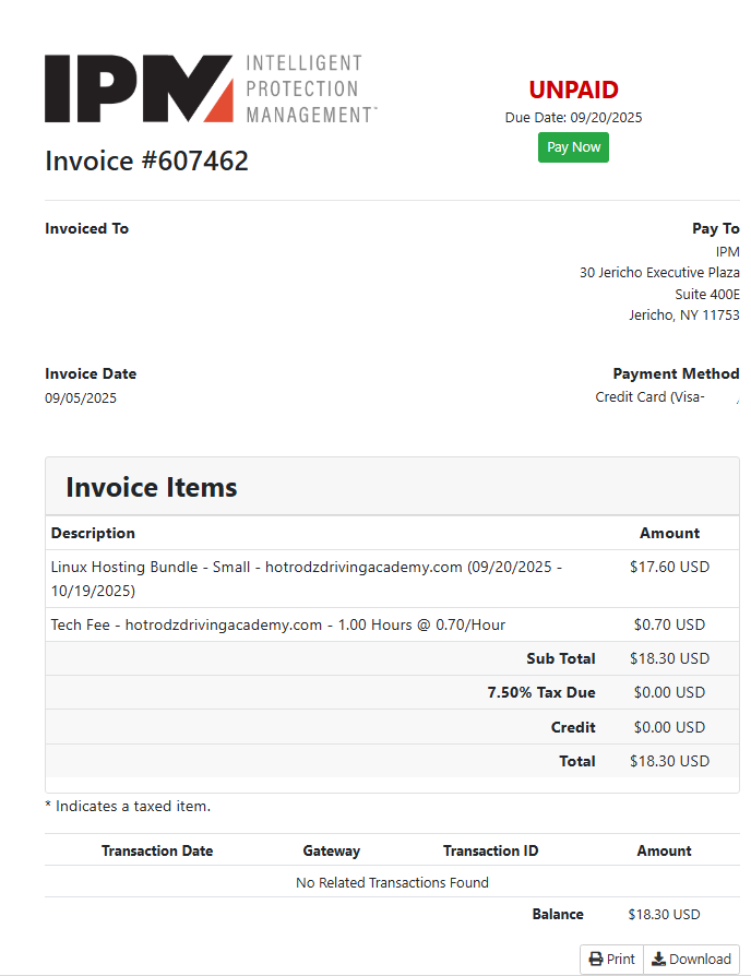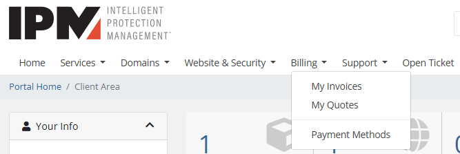 This article will describe the steps on how to make a payment towards an unpaid invoice in the Web Services Manager. Once an invoice reaches its due date, the credit card on file will automatically be charged. If the charge is unsuccessful, we will try again 7 and 14 days later. You may need to follow this article if you have recently updated your credit card and need to pay an outstanding invoice.
